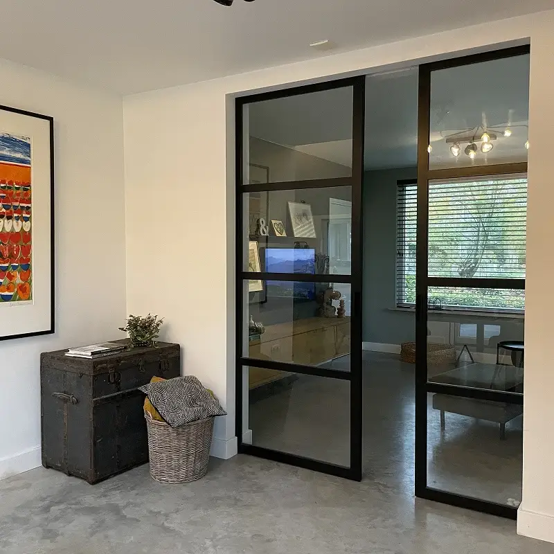 Naast binnendeuren realiseer ik ook stalen wanden, roomdividers, schuifwanden, deuren met zijlichten of bovenpanelen, ensuite-deuren en ronde of getoogde modellen of een buitenpui.